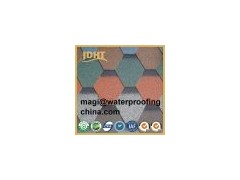 JD - 254 stereoscopic and colorful new waterproof sheet membrane is based on polyester cloth and strengthened polyester cloth , via dip-coating good quality SBS/APP modified asphalt material, adopting international advanced production technology, one side is complementary polyethylene membrane, other side cover color ore material,it can be made into a variety of graphics, the adornment effect of colorful stereo feeling cover. This product is an upgraded version of the traditional waterproof materials and asphalt shingle, it is currently the international newest set of roof decoration, waterproof, energy saving, consumption reduction function integrate waterproof material.